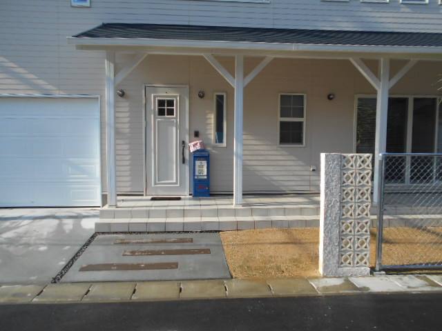 A様邸外構工事の紹介です、はやりのアメリカンスタイル! PCフェンスと芝とドラセナ 門袖は琉球ブロックと塗り物で仕上げて雰囲気もバッチリ! 御主人様が車が大好きでビルトインガレージ付き!